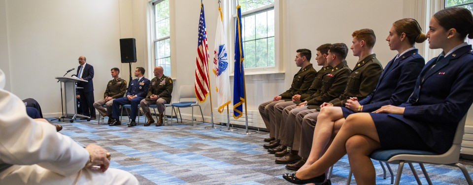 The Reserves Officer Training Corps (ROTC) is a college program offered to train students to become commissioned officers in the United States Armed Forces. This curriculum is pursued alongside traditional college courses, providing students with the unique opportunity to gain leadership training that will lead to success in any career field. Non-scholarship students may participate in the first two years of ROTC without commitment to military service. Click to learn more about ROTC experiences at Tufts.